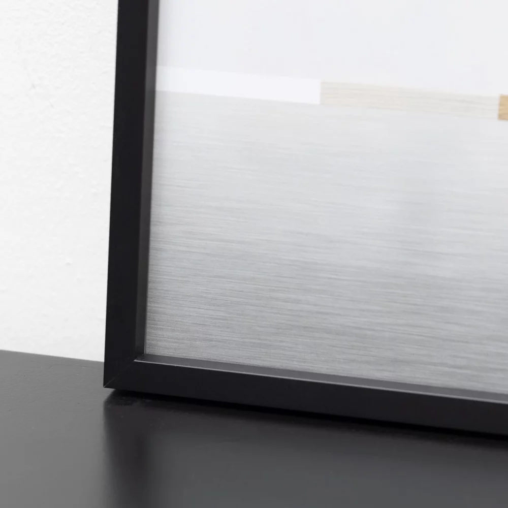 Aluminiumbilderamme Alpha er tilgjengelig med kantslipt floatglass (normalt glass) av høy kvalitet samt med True Color Super Clear, som er antireflekterende på begge sider. True Color Super Clear-bildeglass reduserer forstyrrende lysreflekser til et absolutt minimum og sørger for veldig klare og skarpe kontraster og dermed et uforfalsket bildeinntrykk. I motsetning til andre antireflekterende glass har True Color Super Clear ikke en matt overflate og ingen dyppkanter, som noen ganger finnes på billig standardglass.