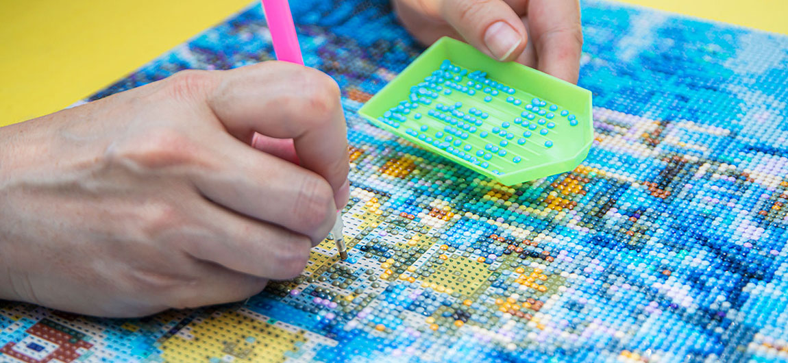 - å feste Diamond-Painting-lerretene på blindrammer, fordi de for det meste har for smal kant og derfor ikke kan spennes opp skikkelig. Dessuten må lerretet strammes godt rundt blindrammen. Da kan diamantene falle av.